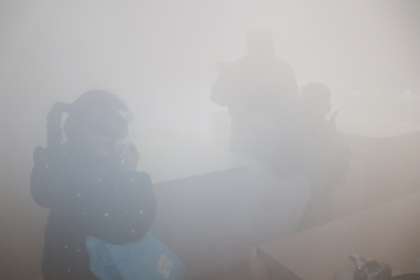 今回の避難訓練では火災を想定した避難の練習を行いました。また、消防署から2名の方を講師に迎え、煙道体験と消火器の取り扱い方を教えていただきました。煙道体験では、人体に害のない煙を部屋に充満させ、煙の怖さや煙の中から安全に逃げる方法を学びました。また、万が一火災に巻き込まれたときのために、自分たちにできることや消火器を安全に取り扱う方法いついて学びました。