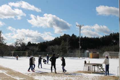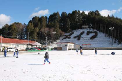連日の厳しい寒さで、明和小学校の校庭はうっすら雪化粧をしています。