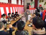 明和太鼓演奏後、主催者代表で川合区長様より22回目を迎える初釜の会について説明し...
