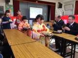 発表会と同時進行でお茶出しが行われました。 児童7人が順番に抹茶を配る係として活...