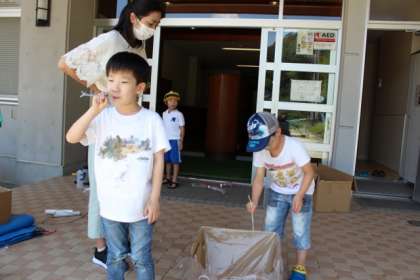 0713 1・2年生 生活科 公開日 2021/07/29 更新日 2021/07/29 お知らせ 生活科でつくった夏のおもちゃで水遊びとしゃぼん玉をしました。しゃぼん玉を上手に跳ばしたり、友だちと水をかけあったりして楽しく過ごすことができました(^^♪