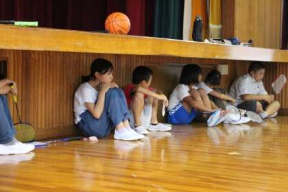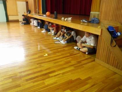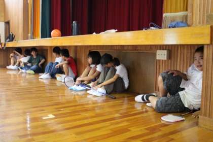 みくらタイムの終わりにシェイクアウト訓練を行いました。集会室にいた高学年は先生の指示がなくても自分たちで判断して、すぐに舞台下に入って身を守ることができました。さすがです◎