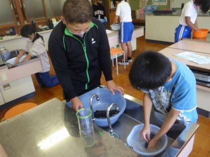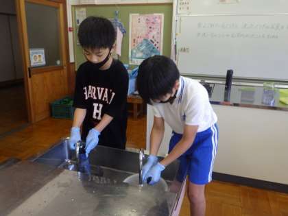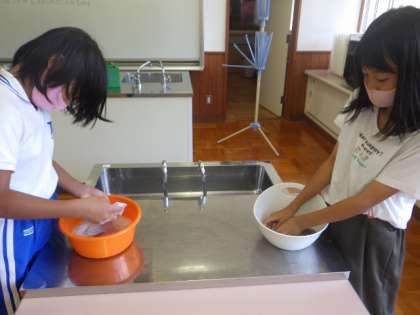 0915 5・6年生 家庭科 公開日 2021/09/22 更新日 2021/09/22 お知らせ 運動場を靴下で走って汚したあと、その靴下を自分で手洗いしました。上手に洗うことができ、きれいになりましたね☆