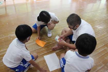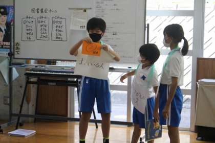 図書放送委員会主催で図書集会が行われました。問題カードが挟んである本を探して、チームで問題に挑戦しました。図書集会を通して楽しく本に触れ合うことができました。