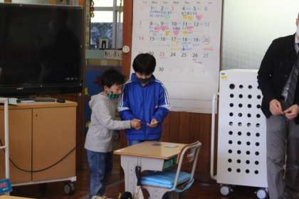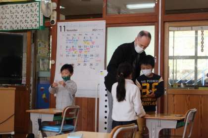 ALTのブライアン先生と楽しくゲームをしながら外国語に触れています。