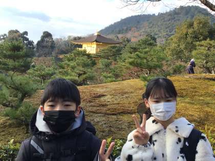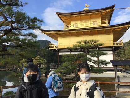 修学旅行13 公開日 2021/12/27 更新日 2021/12/27 各学年から 冬空に目の覚めるような金色に驚きの声をあげていました。 冬休み前の時期ゆえか、観光客はとても少なく、じっくりと眺めることができました。