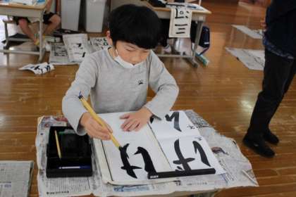 今年度初めての書写指導でした。今年度も外部講師の方に来ていただき、指導していただています。年明けの書き初め大会に向けてみんな真剣に練習に取り組んでいます。