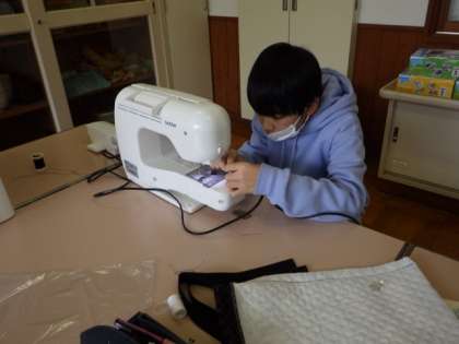 ミシンを使い、エプロンなどの作成を行っています。