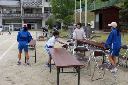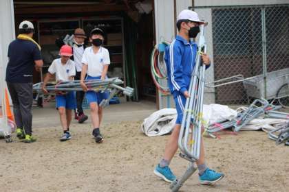 いよいよ明日は運動会です。3〜6年生が運動場の整備やテント・机などの準備をしてくれました。あとは、明日雨が降らないことを祈るばかりです。