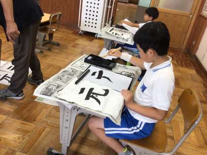「元」という字を書きました。一筆一筆ていねいに書いていたね!