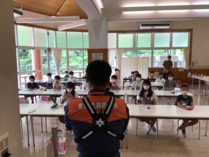 足助消防署の消防士さんから熱中症予防・水難事故防止のお話を聞きました。