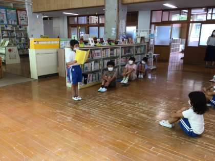 夏休み前集会をしました。代表の子が、前期にがんばったこと、後期に向けてがんばりたいことをスピーチしました。