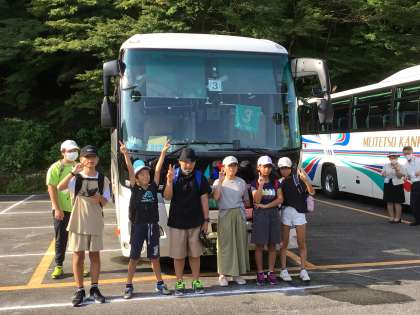 9月12日、晴天の下、7人全員無事に出発しました。結太君が代表でバスの運転手さん、ガイドさんにあいさつしました。