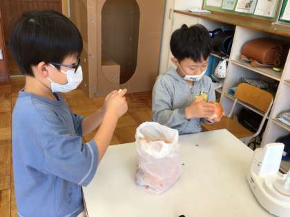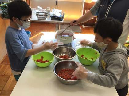 自分達で育てたミニトマトを使って、トマトソースを作りました。