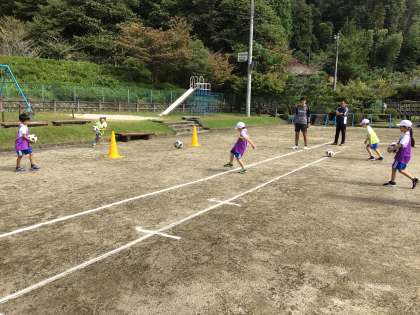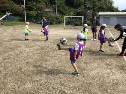 1012 1・2年生 グランパスボールクリニック 公開日 2022/10/14 更新日 2022/10/14 お知らせ グランパスサッカースクールのコーチに来てもらい、サッカーボールの蹴り方について教えてもらいました。足のつま先ではなく足の甲に当てると良いこと、ボールと的を繋いだ線の上を通るように蹴ることなどを知ることができましたね!