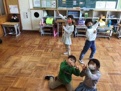 1109 1・2年生 学芸会練習 公開日 2022/11/10 更新日 2022/11/10 お知らせ 学芸会で踊るきつねダンスの練習をしました。 本番では、最後の決めポーズをかっこよく決めてたくさん写真を撮ってもらいたいですね!