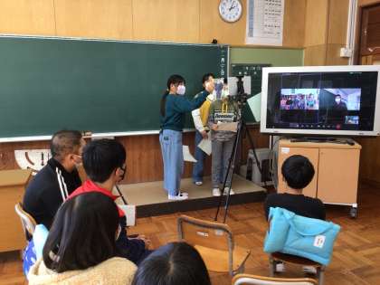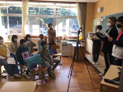 1125 5・6年生 国語 公開日 2022/11/28 更新日 2022/11/28 お知らせ タブレットを使って、大蔵小学校とオンライン授業をしました。 カメラの前に立ち、おすすめの本を紹介し合いました。