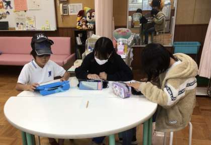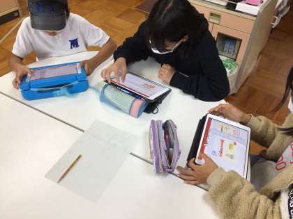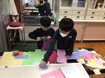保健給食集会に向けて準備をしました。タブレットのパワーポイントでポスターを作ったり、画用紙で会場の飾りを作ったりしました。