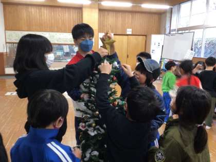 1213 クリスマスツリー飾り 公開日 2022/12/13 更新日 2022/12/13 お知らせ みくらタイムにクリスマスツリーの飾り付けをしました。 子どもたちのセンスが光るクリスマスツリー🎄が完成しましたね!