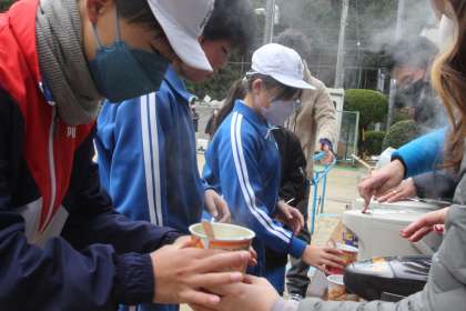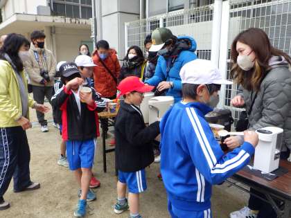 寒い中走り切った子どもたちには、PTAから温かいスープが配られました。ありがとうございました。