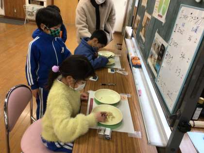 0127 豆つかみ練習 公開日 2023/02/03 更新日 2023/02/03 お知らせ 2月3日に保健給食委員による「豆つかみ大会」が行われます。休み時間には、1週間後の本番に向けて一生懸命練習している姿を見ることができました。