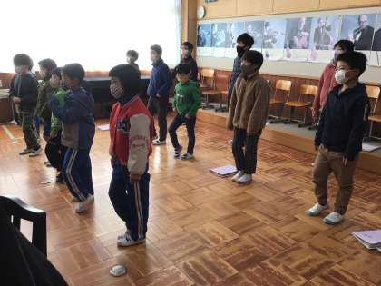 0217 在校生歌練習 公開日 2023/02/20 更新日 2023/02/20 お知らせ 卒業式に向けて、今週から歌の練習が始まりました。テンポを合わせて歌うために足踏みをしたり、高い音をきれいに出すために膝を曲げたりと、体を動かしながら発声練習をしました。