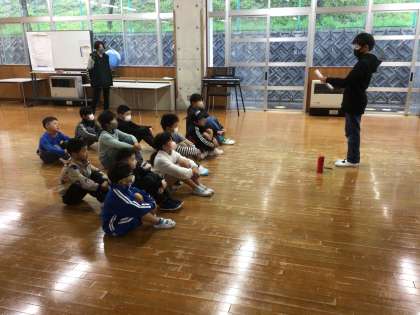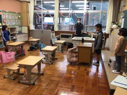 第1回通学団会を行いました。集合場所や時間、並び方、危険な場所や気をつける場所の確認をしました。