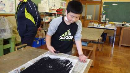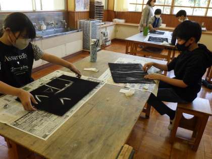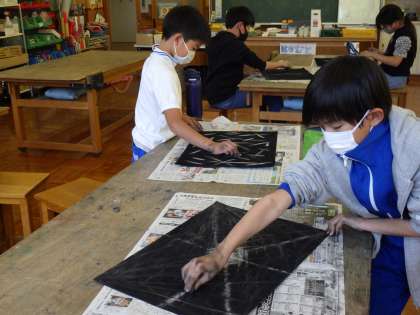 コンテで画用紙を真っ黒に塗って、それを消しゴムで消して絵を描きました。みんな、手が真っ黒になりましたね。