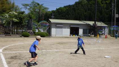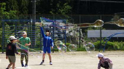 0502 しゃぼん玉大会 公開日 2023/05/02 更新日 2023/05/02 お知らせ ひまわり学級が計画・準備してくれた『しゃぼん玉大会』を全校で行いました。風に合わせながら、しゃぼん玉をたくさん飛ばしました。楽しかったですね!