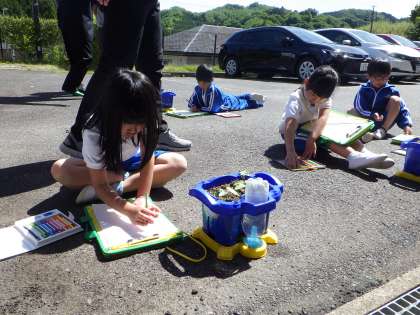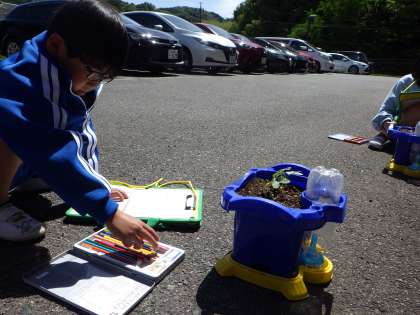 あさがおの観察をしました。自分たちがお世話をしているあさがおの絵を描き、記録に残します。