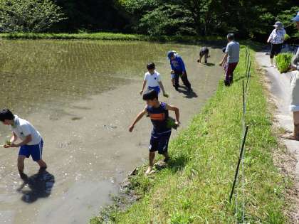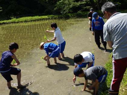総合の授業で田植えをしました。泥に苦戦しながらもしっかりと植えることができました。