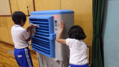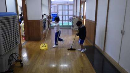 雨天だったので、校舎内の掃除や集会室の準備をしました。ピカピカになりましたね。