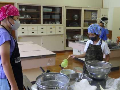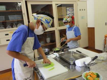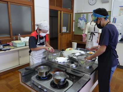 調理実習をしました。包丁を使って切ったり、野菜をゆでたりしました。