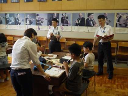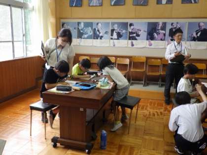 0713 3・4年生 音楽 公開日 2023/07/13 更新日 2023/07/13 各学年から 豊田市教育委員会の学校訪問で2人の先生が授業を見に来られました。 「アチャパチャノチャ」をリコーダーで演奏できるように練習しました。
