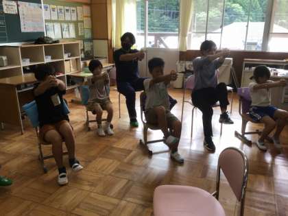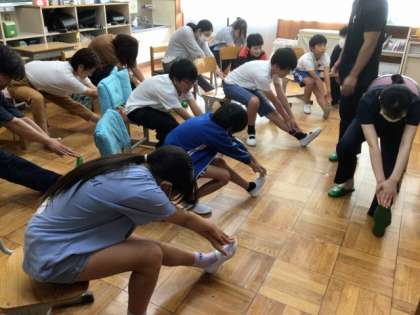 「腰ピン姿勢を手に入れよう」をテーマに、学校保健委員会を行いました。保健給食委員会の姿勢に関するクイズを行ったり、理学療法士による姿勢によいストレッチやトレーニングも紹介していただきました。