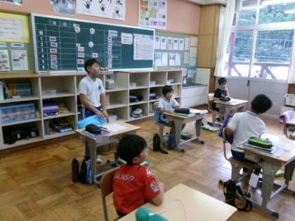 運動場周りの植物を観察し、夏の終わりの時期の植物の変化を発表しました。