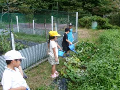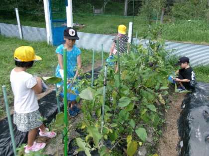 育てている野菜の世話をしました。
