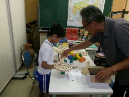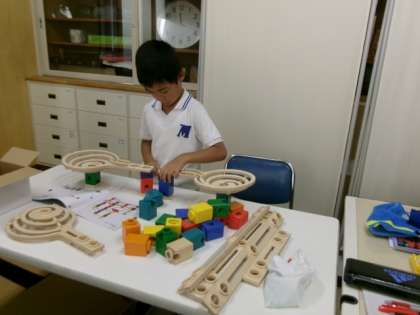 ビー玉を転がすためのコースを、迷いながら組み立てていきました。