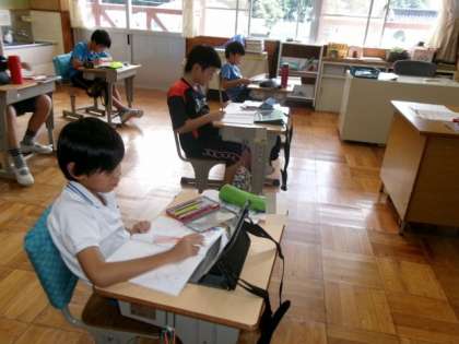 台風の進路を学習用タブレットを使って、調べまとめました。