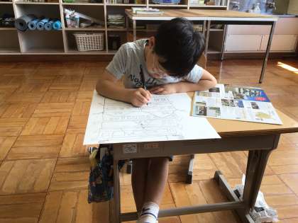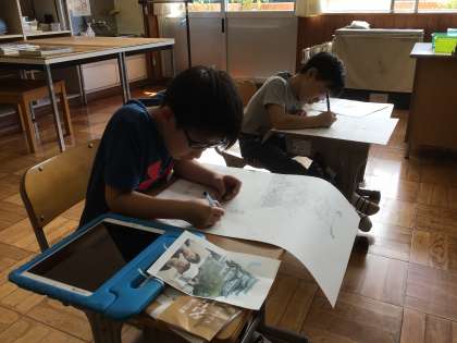 都市体験学習で見てきた名古屋城を描きました。