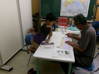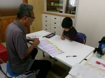 漢字の学習を行いました。担任と漢字の書き順を確認しました。