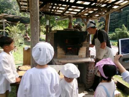 1003 1・2年生 ひまわり学級 生活科 公開日 2023/10/04 更新日 2023/10/04 各学年から 地域探検を行いました。地域の様子を観察した後は、地域講師からピザの作り方を教えていただきました。自分たちで作ったピザを窯で焼いて食べました。