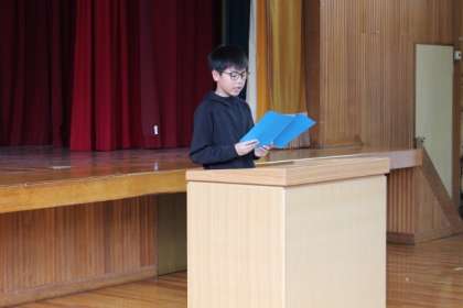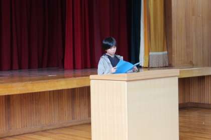 1010 後期始業式2 公開日 2023/10/10 更新日 2023/10/10 学校行事 後期の始業式を行いました。各学年の代表の子が、前期がんばったこと・後期がんばりたいことについて、発表しました。みんな堂々と自分の思いを発表しました。 校長先生からは、これまで子どもたちに話した内容について、後期も継続して取り組んでいこうというお話がありました。