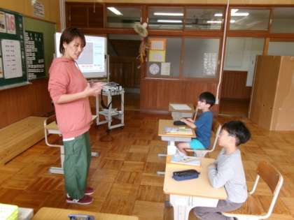 自分の持っている物について、先生から英語で質問されたことを、英語で正しく答えました。