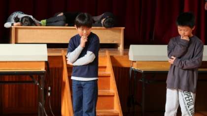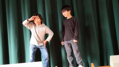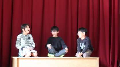 学芸会の劇の練習をしました。役になりきって、表情よく演技しました。