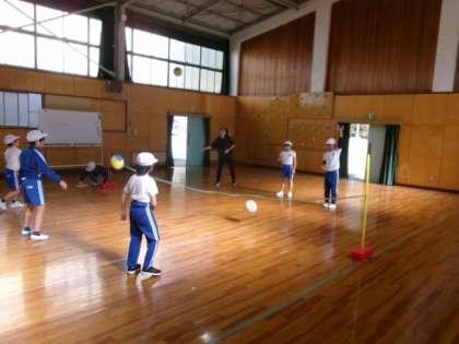 1114 3・4年生 ひまわり学級 体育 公開日 2023/11/14 更新日 2023/11/14 各学年から プレルボールを行いました。友達同士、声を掛け合うことで、パスがうまく続くようになりました。