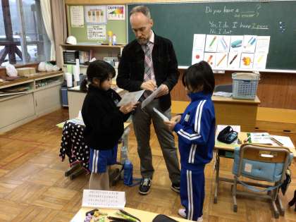 1117 3・4年生 外国語活動 公開日 2023/11/17 更新日 2023/11/17 お知らせ ALTの先生と一緒に、「Do you have〜?」を使って勉強をしました。 ペアになって筆箱の中身当てクイズをしました。