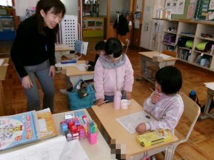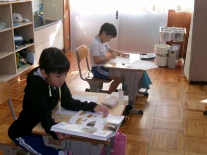 プリント学習を行いました。プリントにはクイズもあり、楽しんで学習しました。