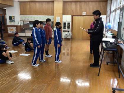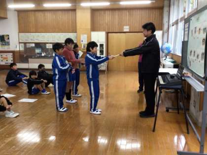 授業中の姿勢がよかった腰ピン賞の表彰を行いました。