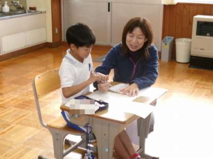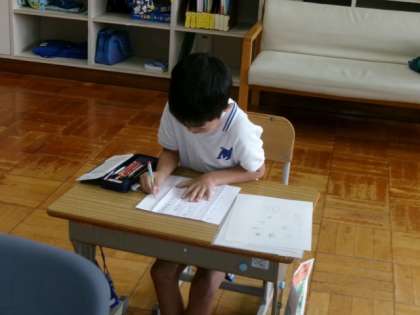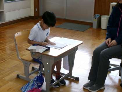 書き初めの練習を行いました。姿勢に気を付けて書くようにしました。